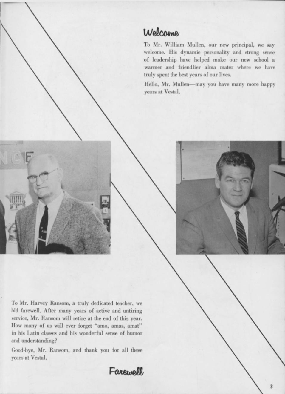 To Mr. William Mullen our new prin ipal, we ay