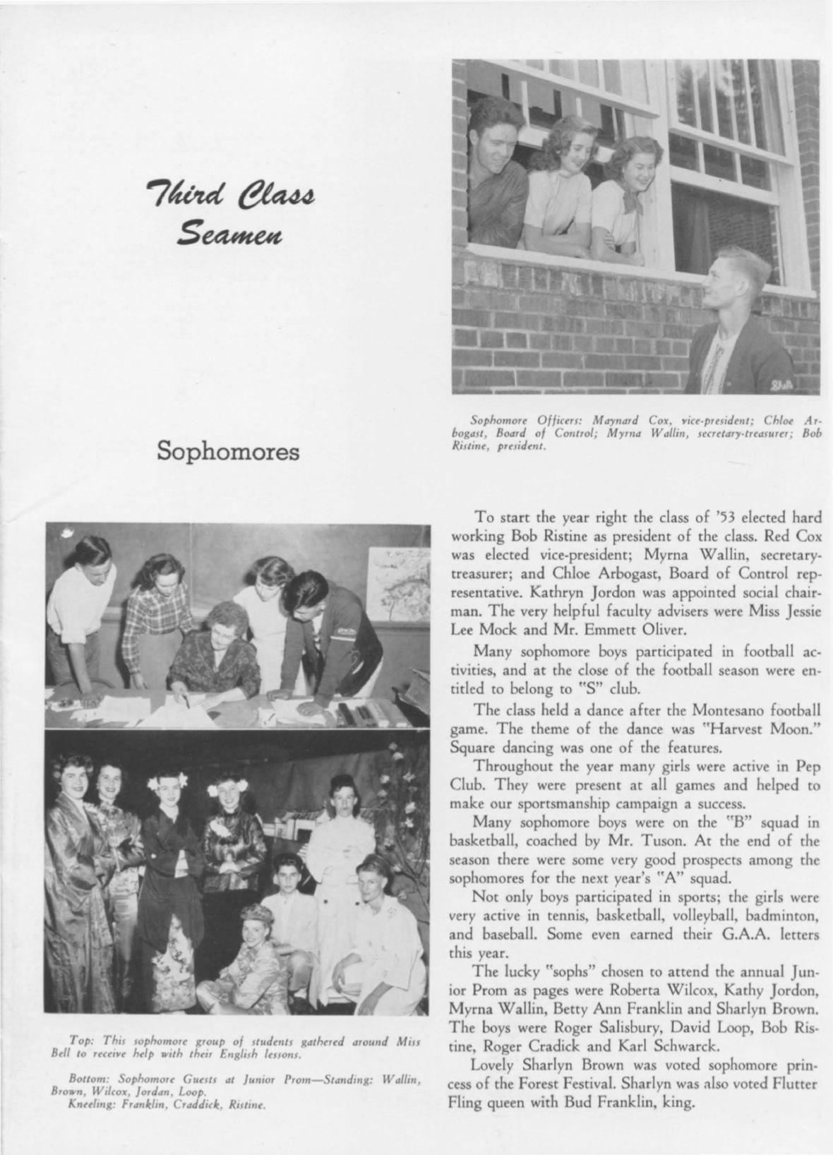 Sophomore Officers: Maynard Cox, viu-presrdent ; Chloe Ar·